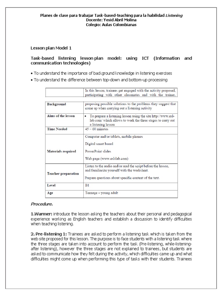 Task Based Lesson Plan Model 1 | PDF | Lesson Plan | Educational Technology