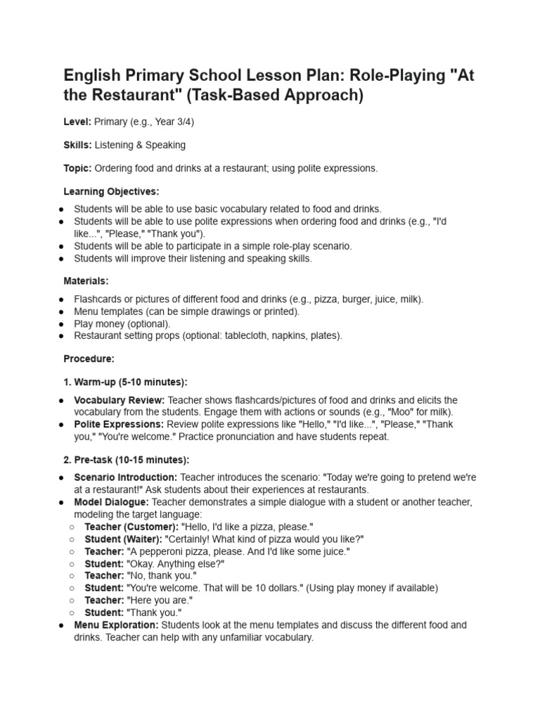 Task-Based Learning Lesson Plan: Enhancing Language Skills with ...