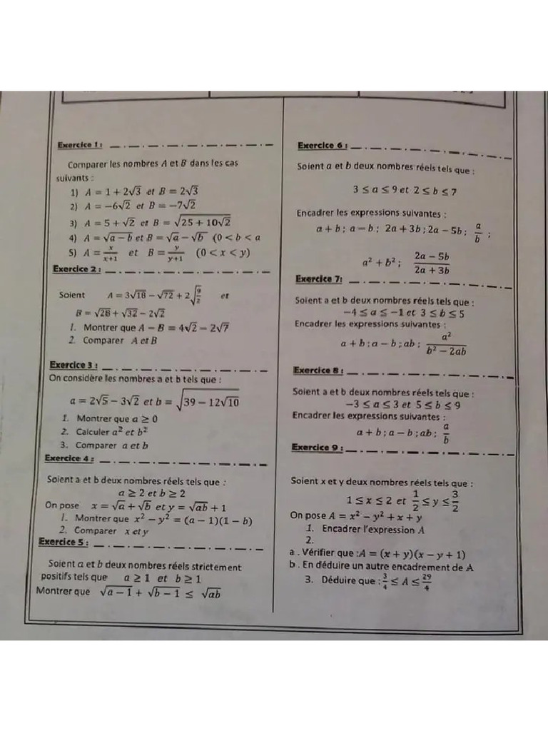 Math TC Semestre 1 Devoir 1 Modele 1 2 | PDF