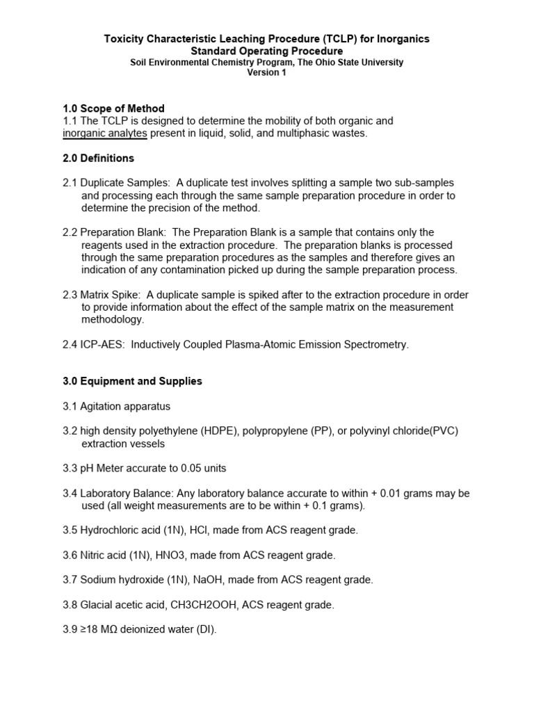 TCLP - Toxicity Characteristic Leaching Procedure (EPA) in Scientific ...