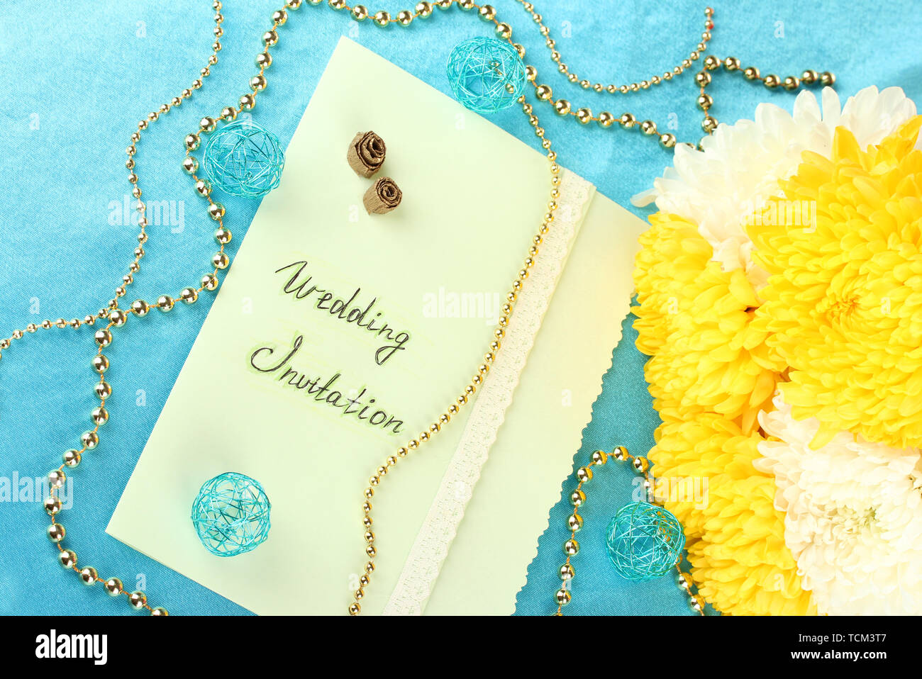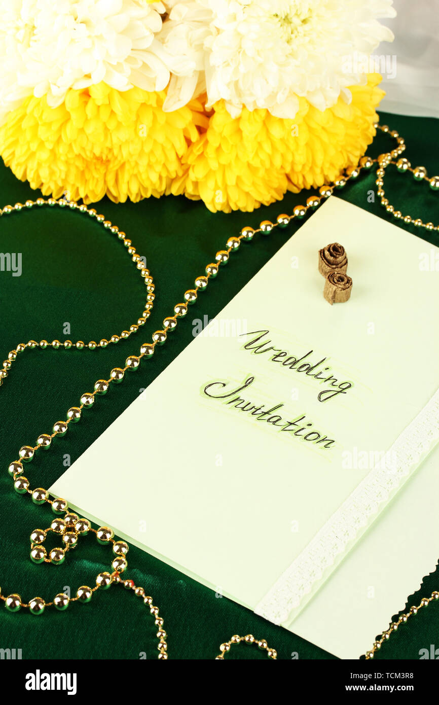 wedding invitations on decorated table close-up Stock Photo - Alamy