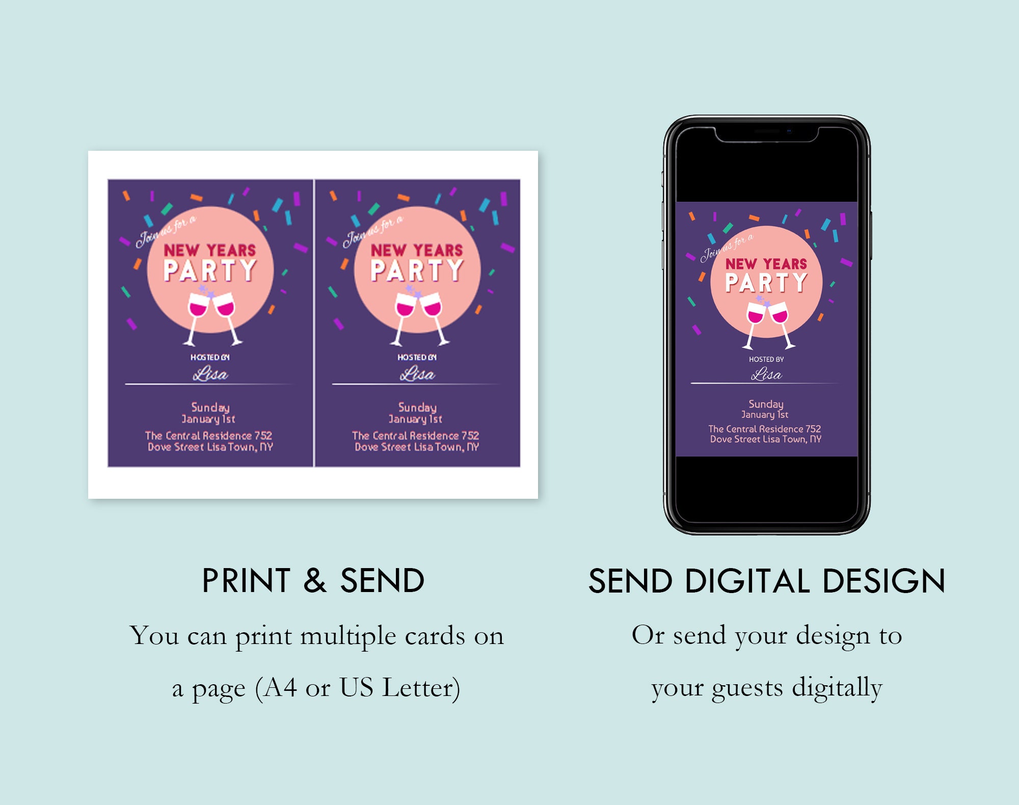 Printable New Year Party Invitation, Editable Party Invitation, Lunar ...
