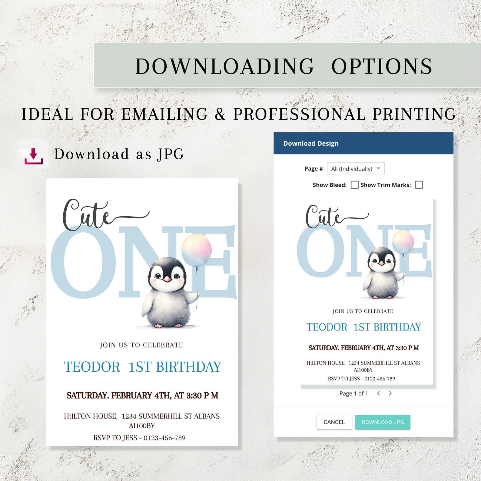 Editable Penguin Birthday Invitation, Boy Colorful Customizable, Girl ...