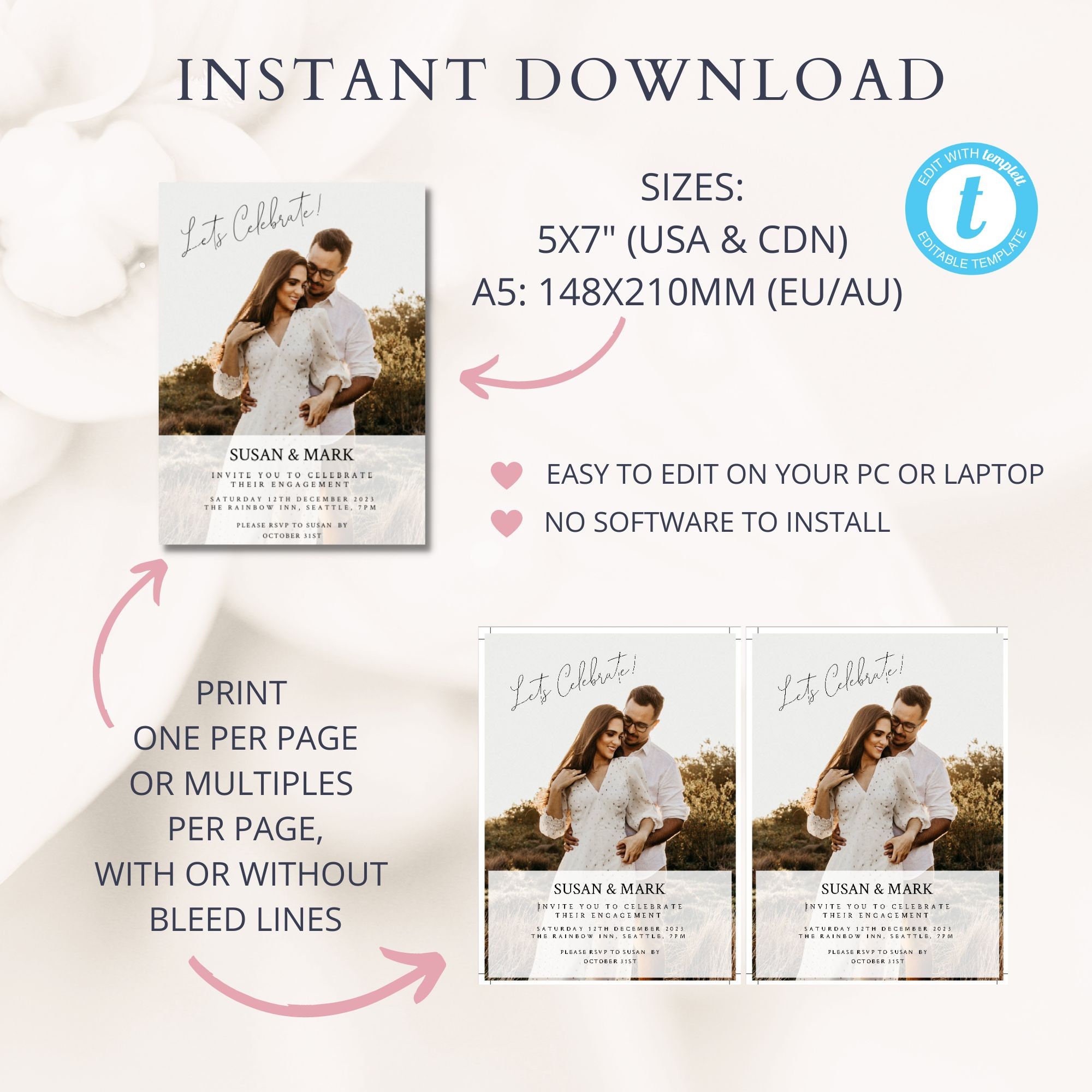 Wedding Invitation Card, Editable Canva Template, Printable, Digital ...