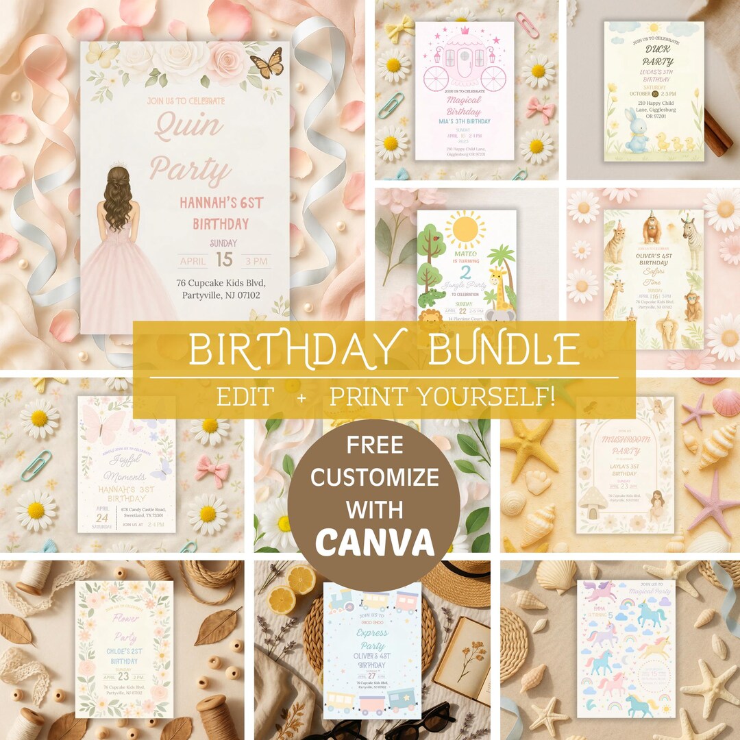 Editable Kids Birthday Invitation Cards – Unicorn, Train, Jungle Themed ...
