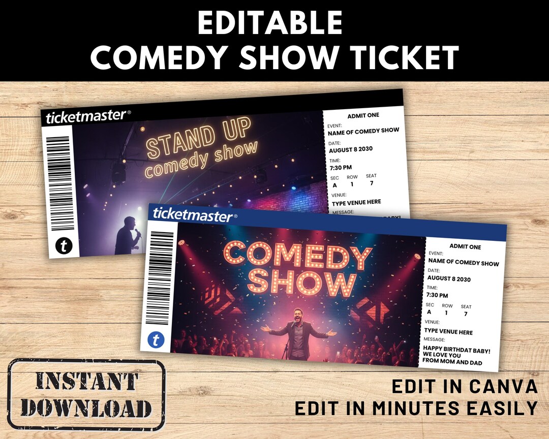 Printable COMEDY SHOW Surprise Ticket, Stand up Comedy Event Invitation ...
