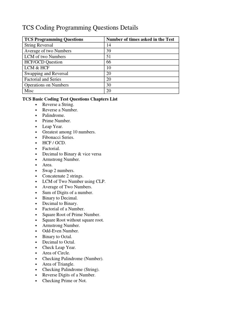 TCS Coding Questions & Programming Round (Repeated) - 2023 | PDF ...