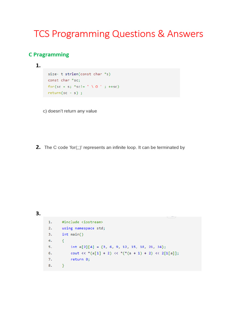 Tcs Programming Questions - Tcs Programming Mcqs | PDF | C (Programming ...