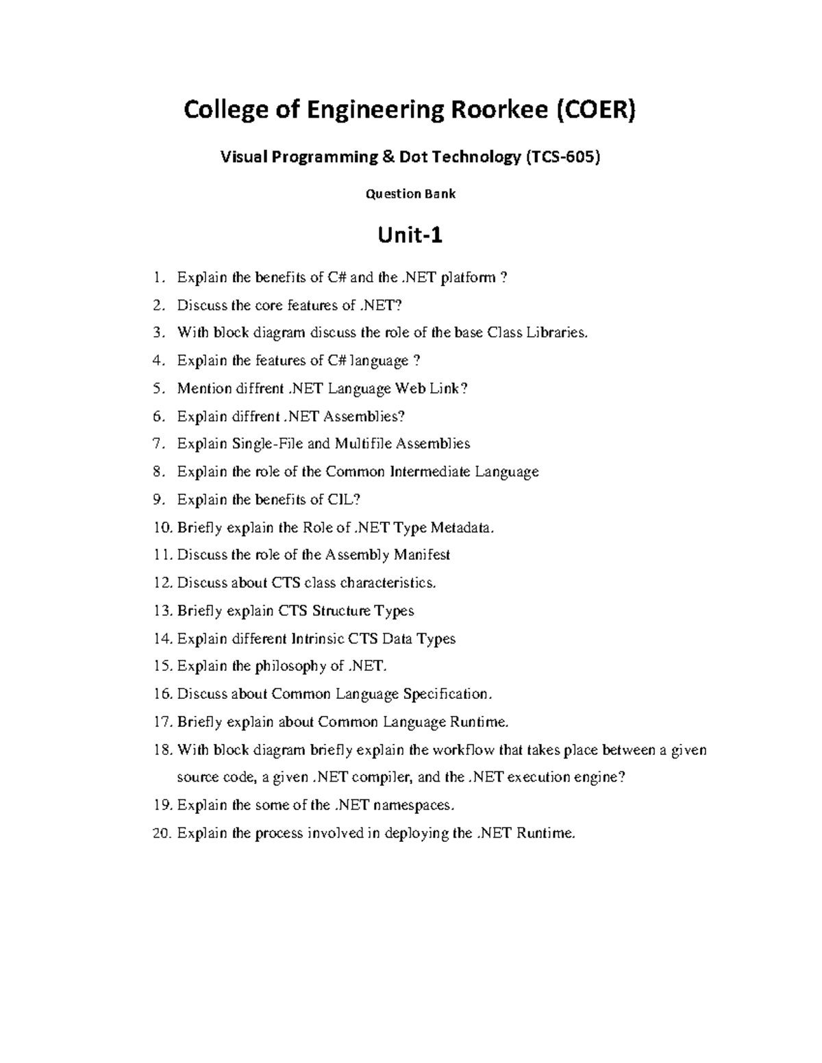 TCS-605 Visual Programming Question Bank 2020-Even Semester - Studocu