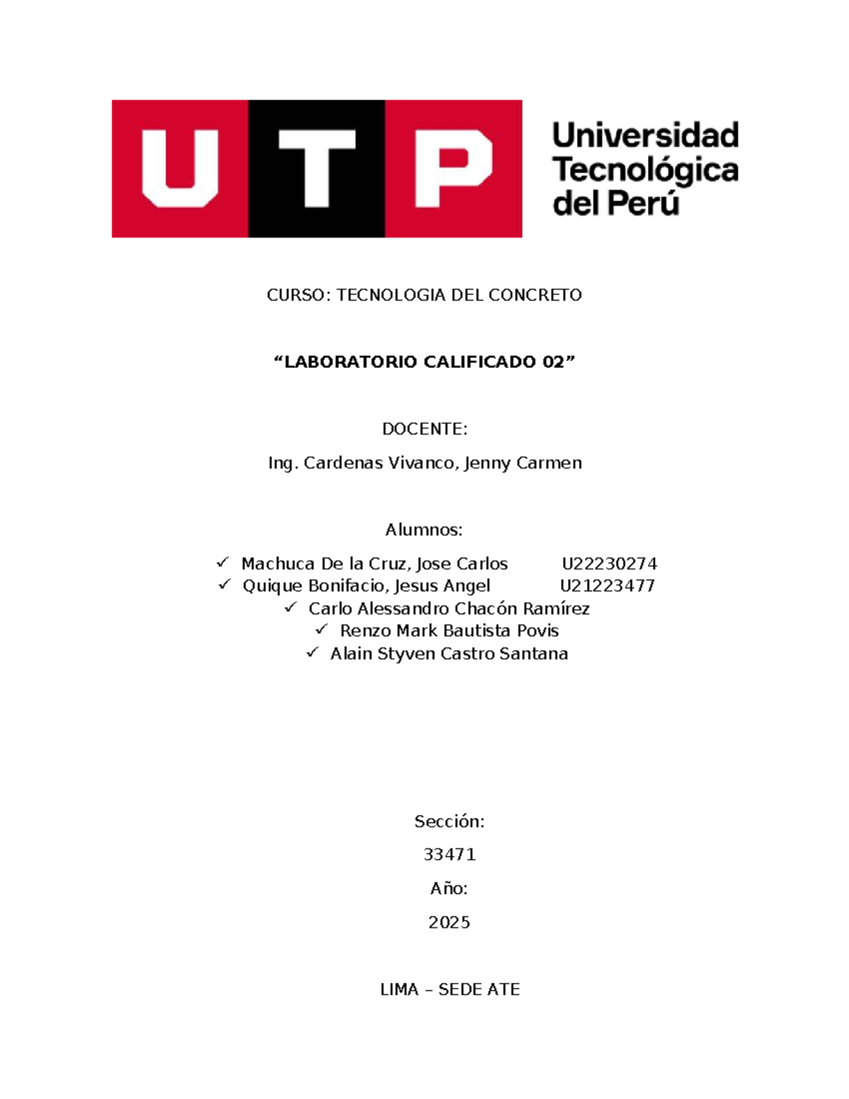 Informe LAB 2 TDC: Diseño y Evaluación de Concreto Fresco - Studocu