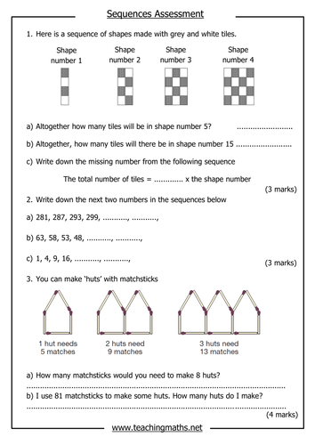 Quiz on sequences (patterns) | Teaching Resources
