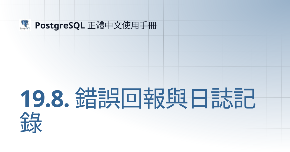 19.8. 錯誤回報與日誌記錄 | 11 | PostgreSQL 正體中文使用手冊