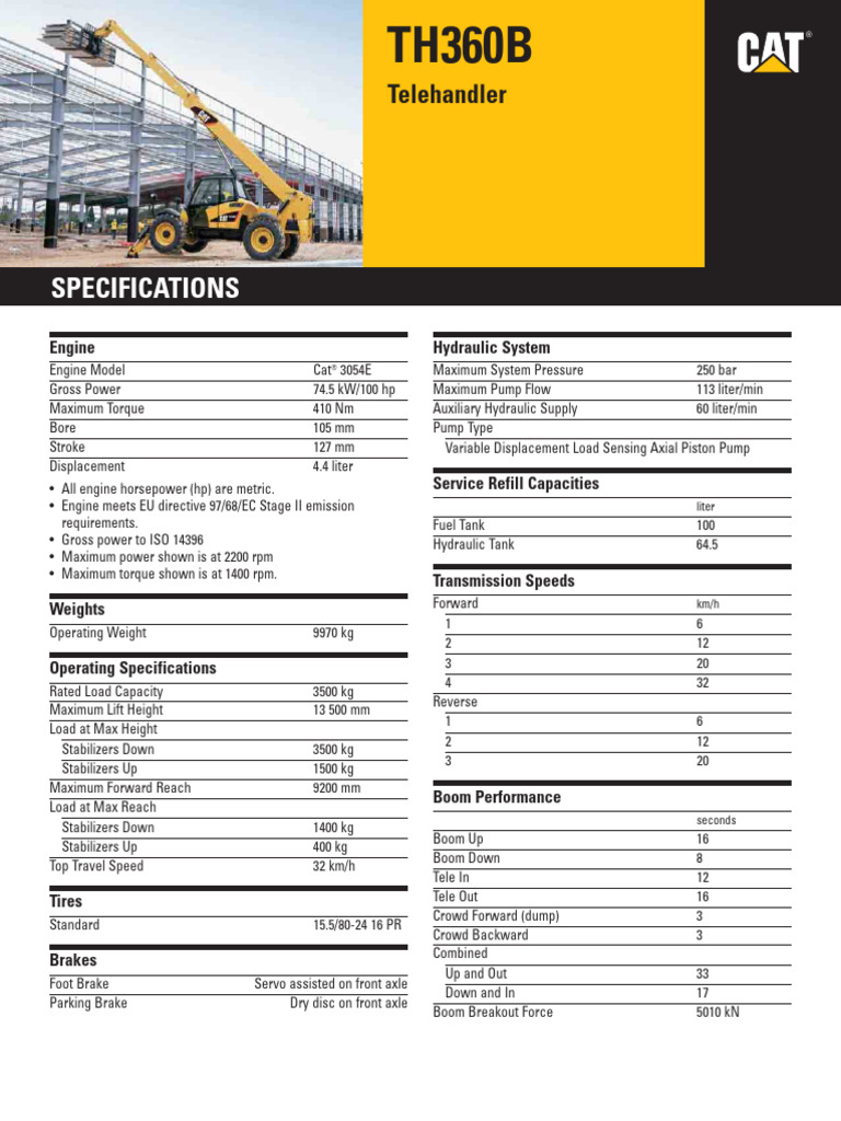 Caterpillar (CAT) TH360B Specifications CraneMarket