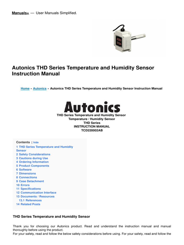 Autonics THD Series Temperature and Humidity Sensor Instruction Manual