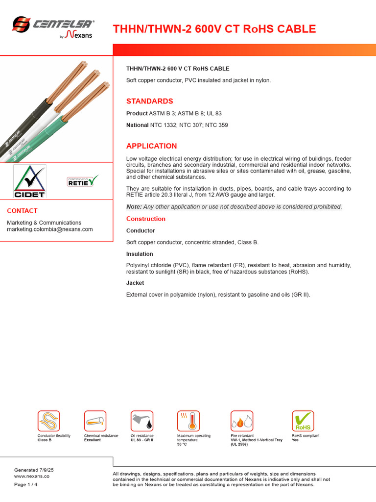 RoHS Compliant THHN/THWN-2 Cable | PDF | Building Engineering ...