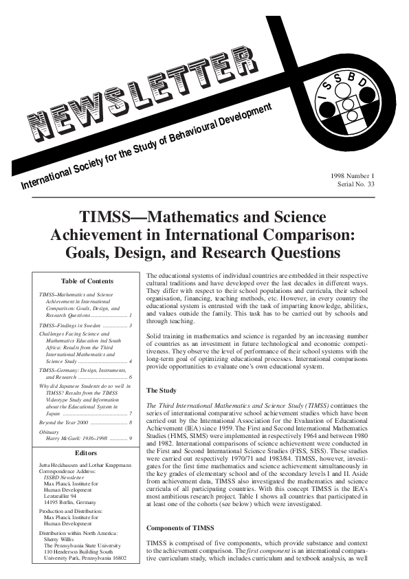 (PDF) i TIMSS IEA's Third International Mathematics and Science Study ...