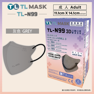 康寶牌 | TL Mask 【TL-N99】 成人灰色立體口罩 每盒30個 (獨立包裝) 《香港製造》 | 顏色 : 淺灰色 ...