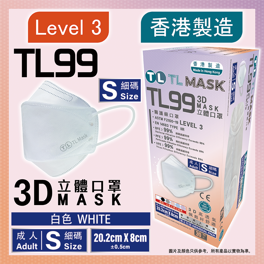 Lv3 香港製造! TL Mask 3D 立體口罩 TL99 售 $99 盒