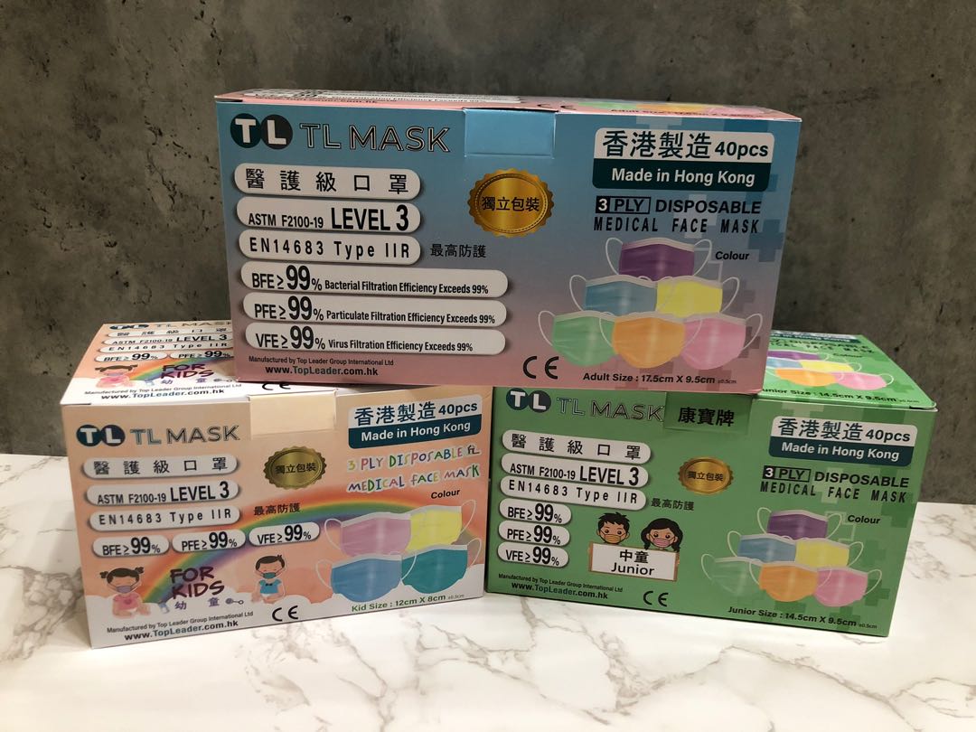 康寶牌 | TL Mask《香港製造》成人彩色口罩 40片 ASTM LEVEL 3 BFE /PFE /VFE99 | HKTVmall ...