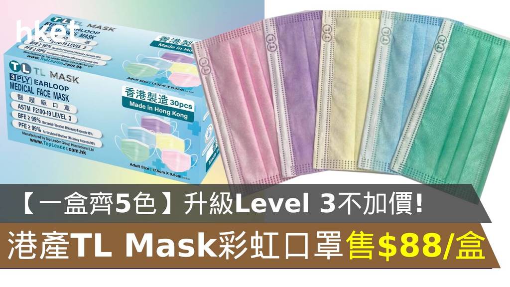 【一盒齊5色】升級Level 3不加價! 港產 TL Mask 彩虹口罩售$88/盒 新增現貨零售點