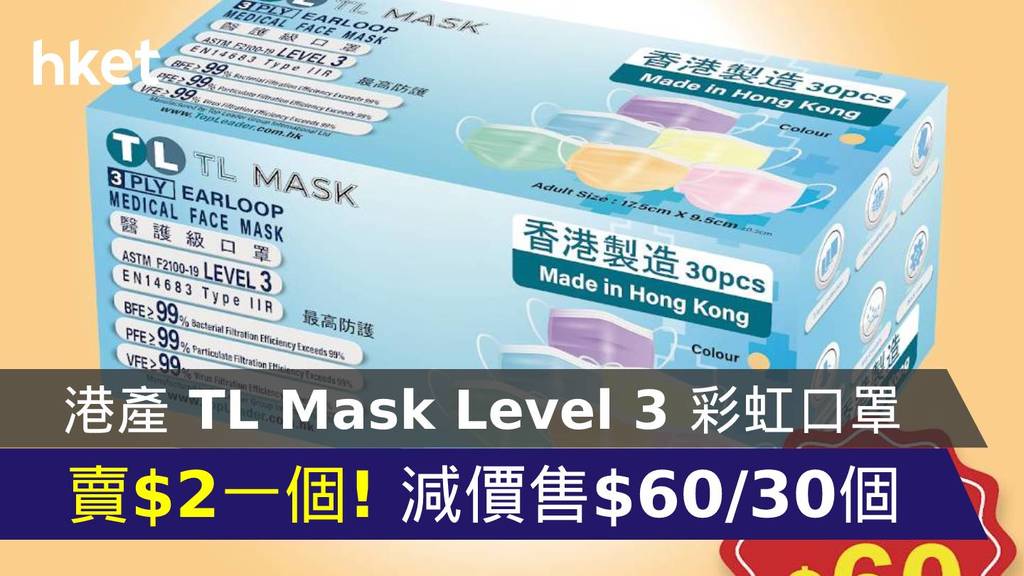 【一盒齊色】TL Mask Level 3 彩虹口罩 最平售 $37.5/30個 仲有包郵優惠 【附優惠詳情】