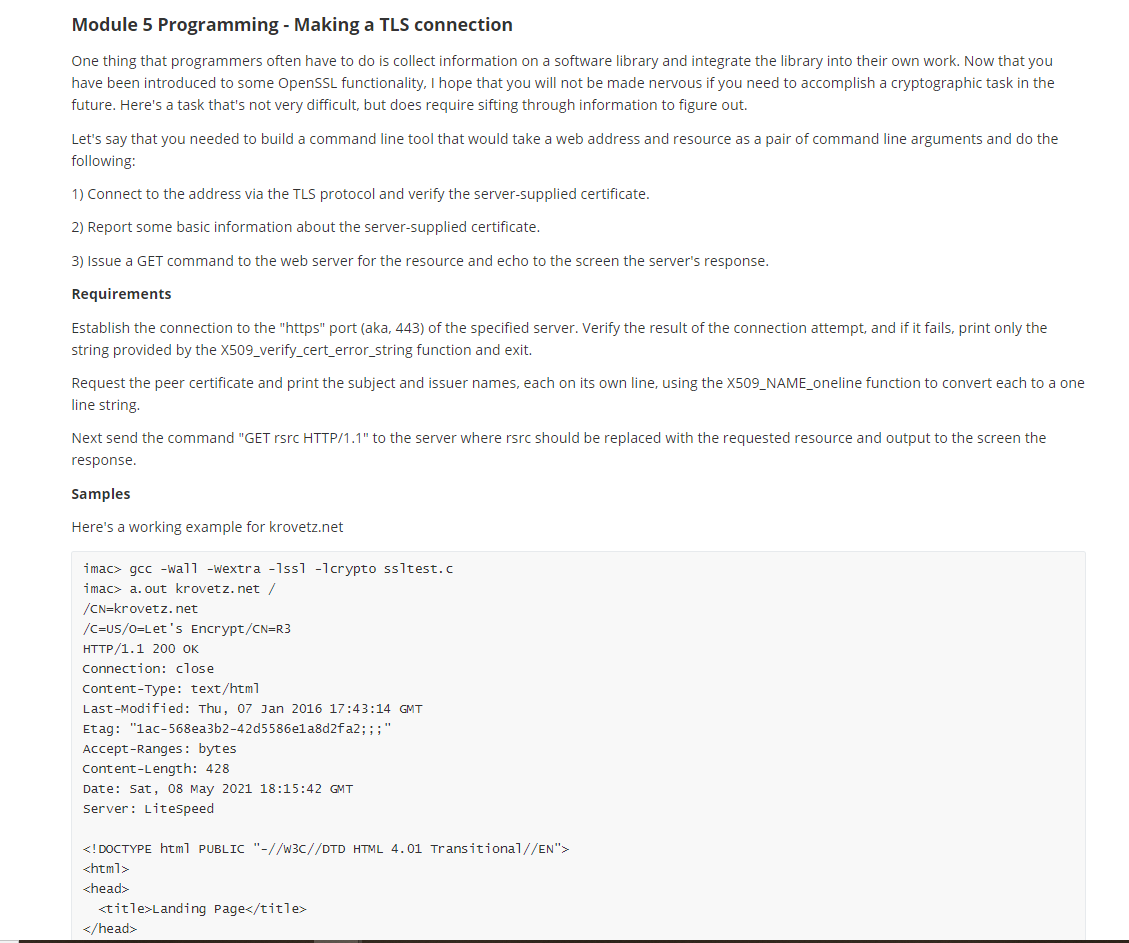 Solved Module 5 Programming - Making a TLS connection One | Chegg.com