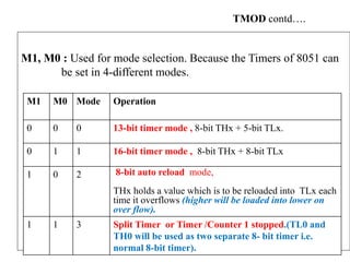 Timer 0 and Timer1 register TMOD (timer mode) Register: Both timers 0 ...