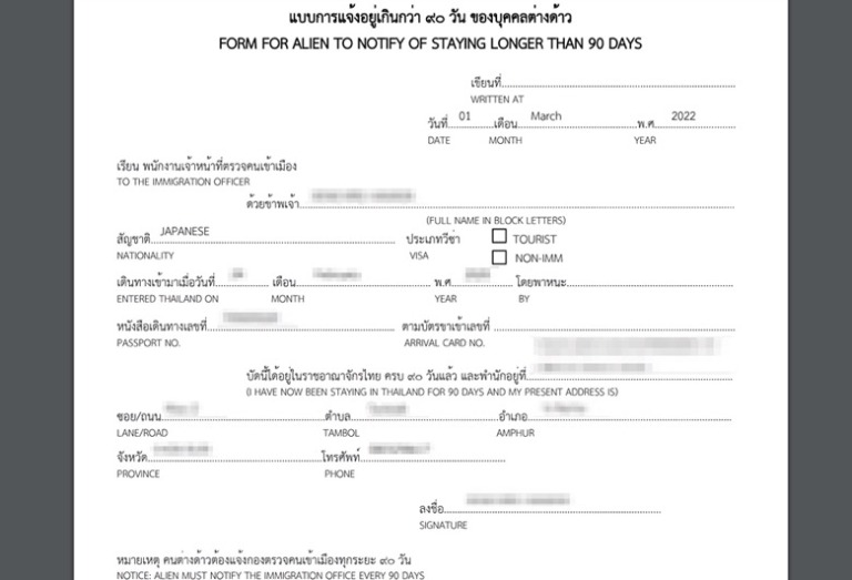 TM-47 | Guidelines for completing Thailand's 90-Day Notification/Report ...