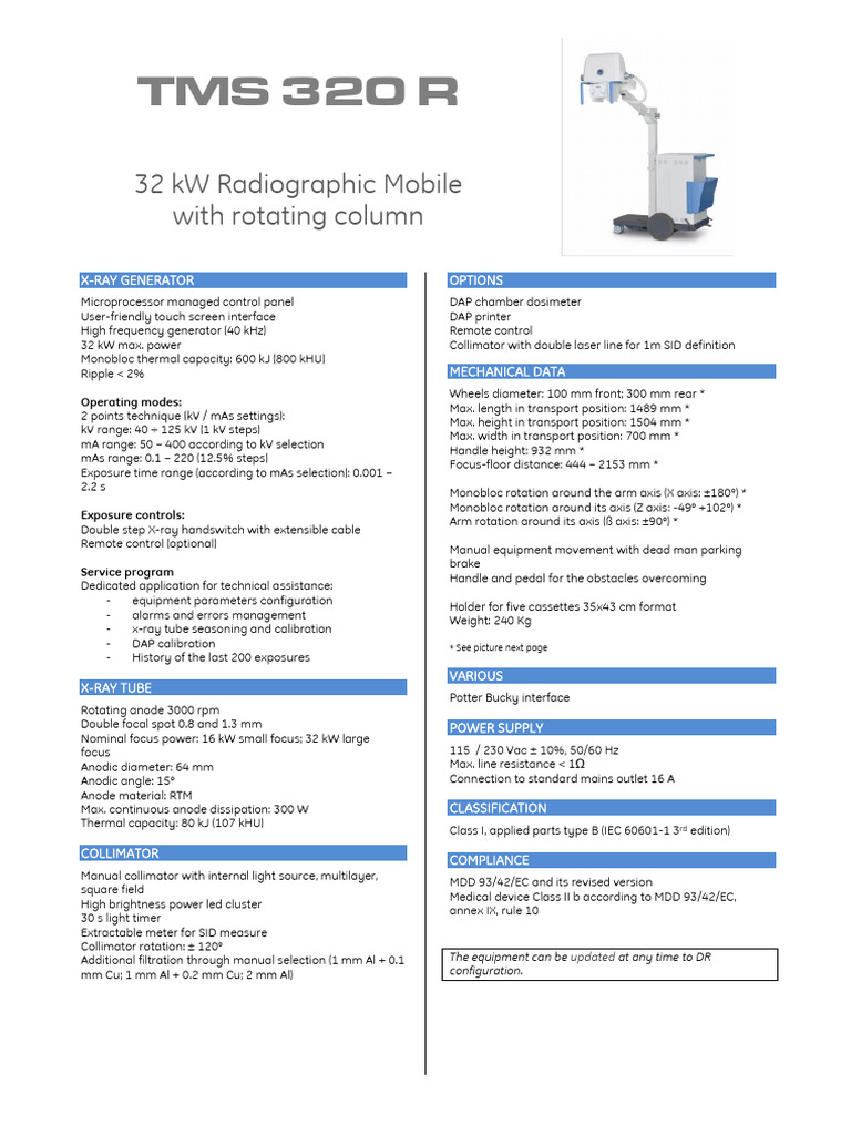 TMS 320 R: 32 KW Radiographic Mobile With Rotating Column | PDF
