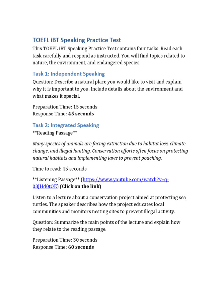 TOEFL iBT Speaking Practice: Sample Questions, Mock Test (Download For ...