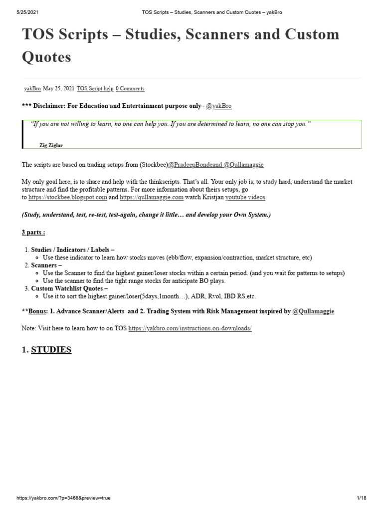TOS Scripts - Studies, Scanners and Custom Quotes - Yakbro | PDF ...