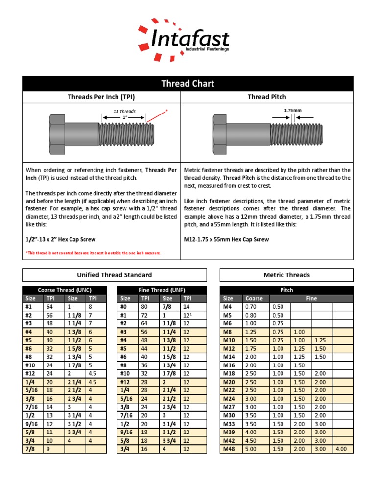Thread Pitch and TPI Chart for Metric and US Standard Fasteners | PDF ...