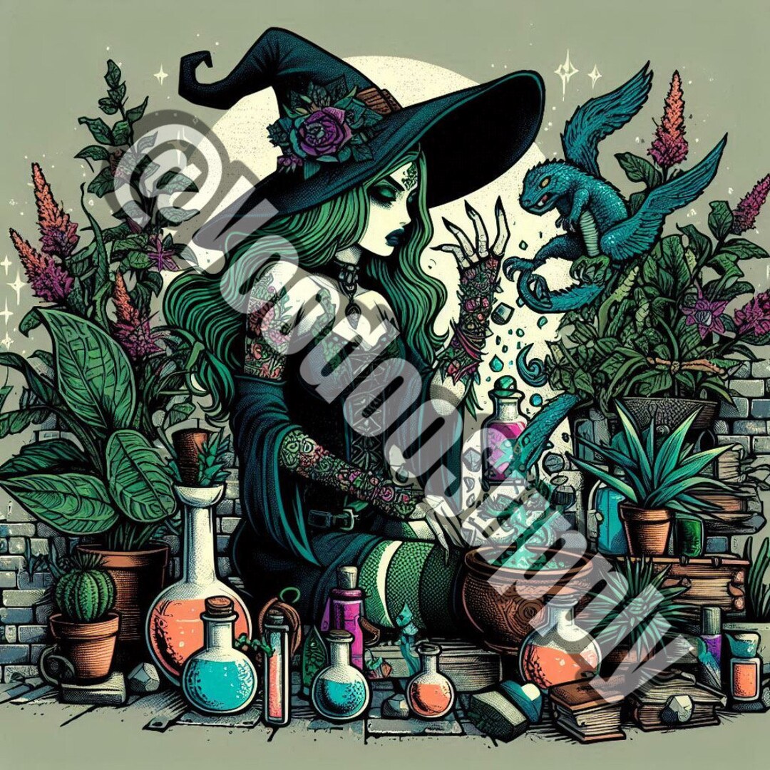 2 Gothic Dragon Witch Permanent Sticker - Etsy