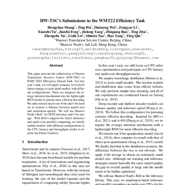 HW-TSC’s Submission for the WMT22 Efficiency Task - ACL Anthology