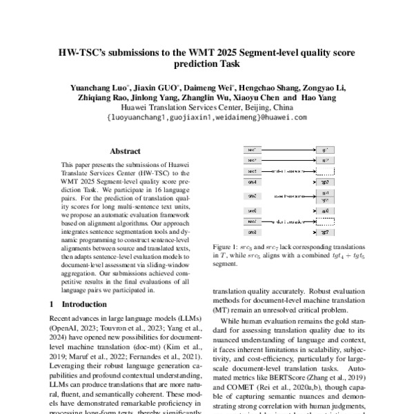 HW-TSC’s Submissions to the WMT 2025 Segment-level Quality Score ...