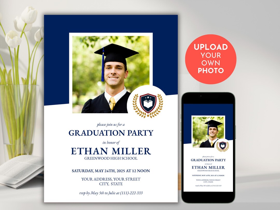 Graduation Party Invitation Template With Photo & Logo | Editable ...