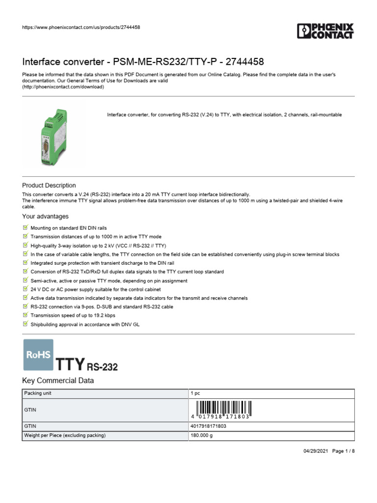 PSM-ME-RS232/TTY-P Interface converter