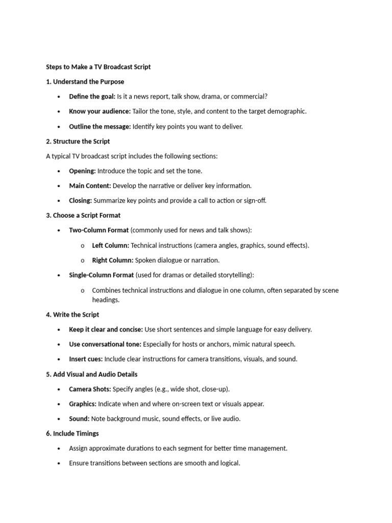 TV Broadcasting Script - Format - Oral Communication - Studocu
