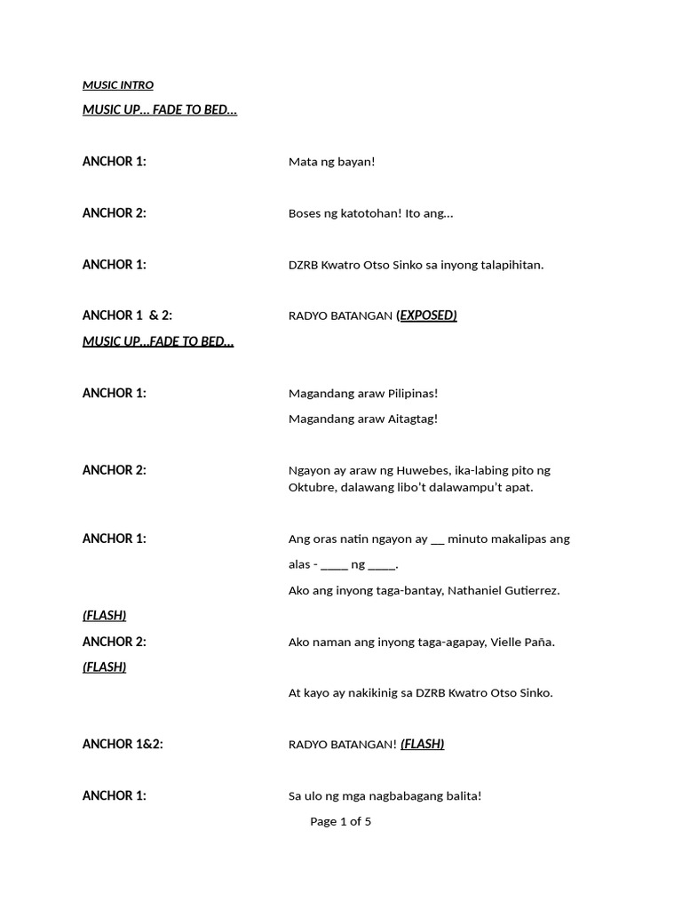 Sample 5-minute Broadcast Script | Conielyn Montilla - Academia.edu