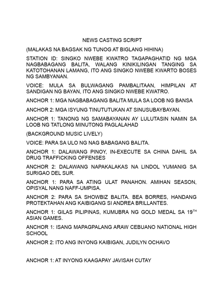 Script Broadcasting Sample News Report Balita Tagalog Filipino 4 ...