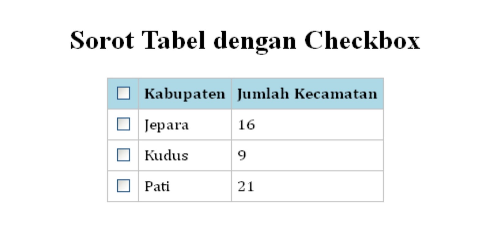 Select Tabel dengan Checkbox Menggunakan jQuery