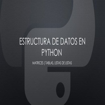 Tarea No. 1. Estructuras de Datos en Python Matrices (Tablas, Listas de ...