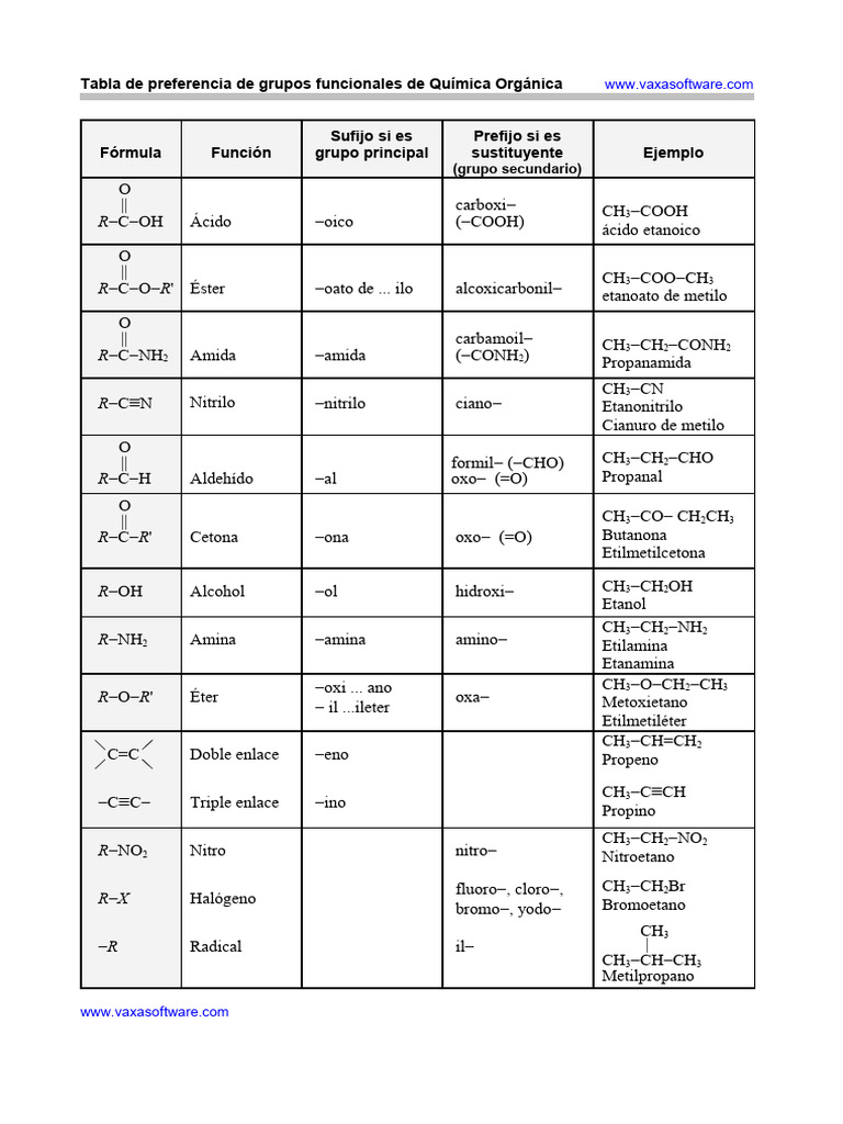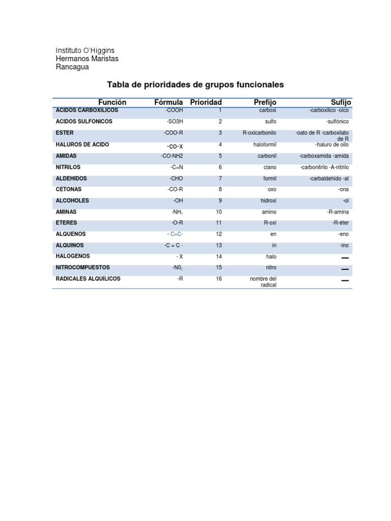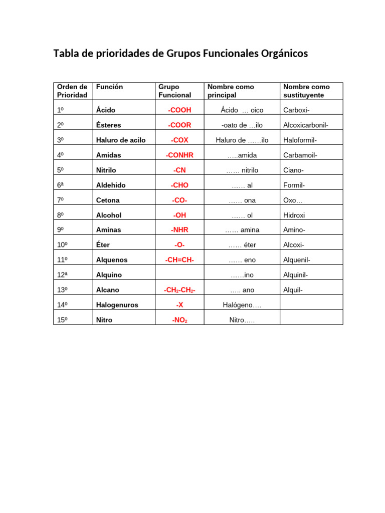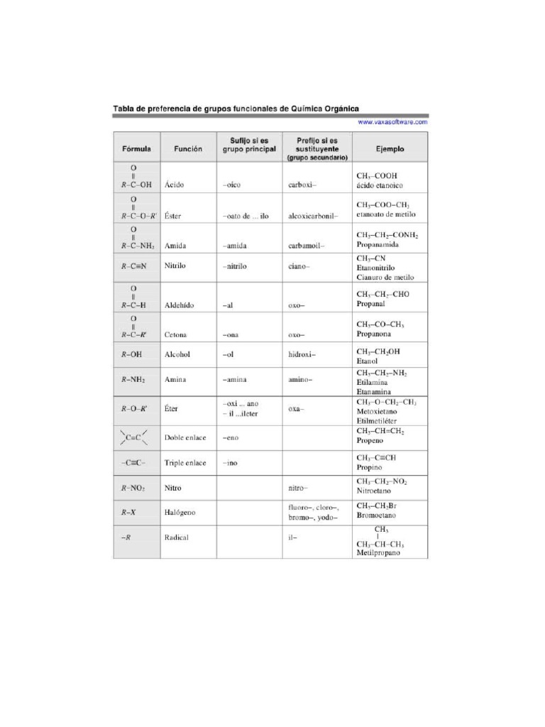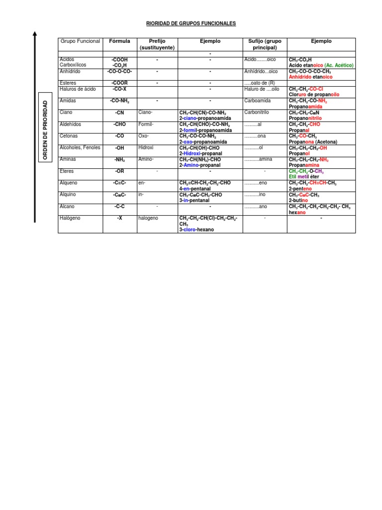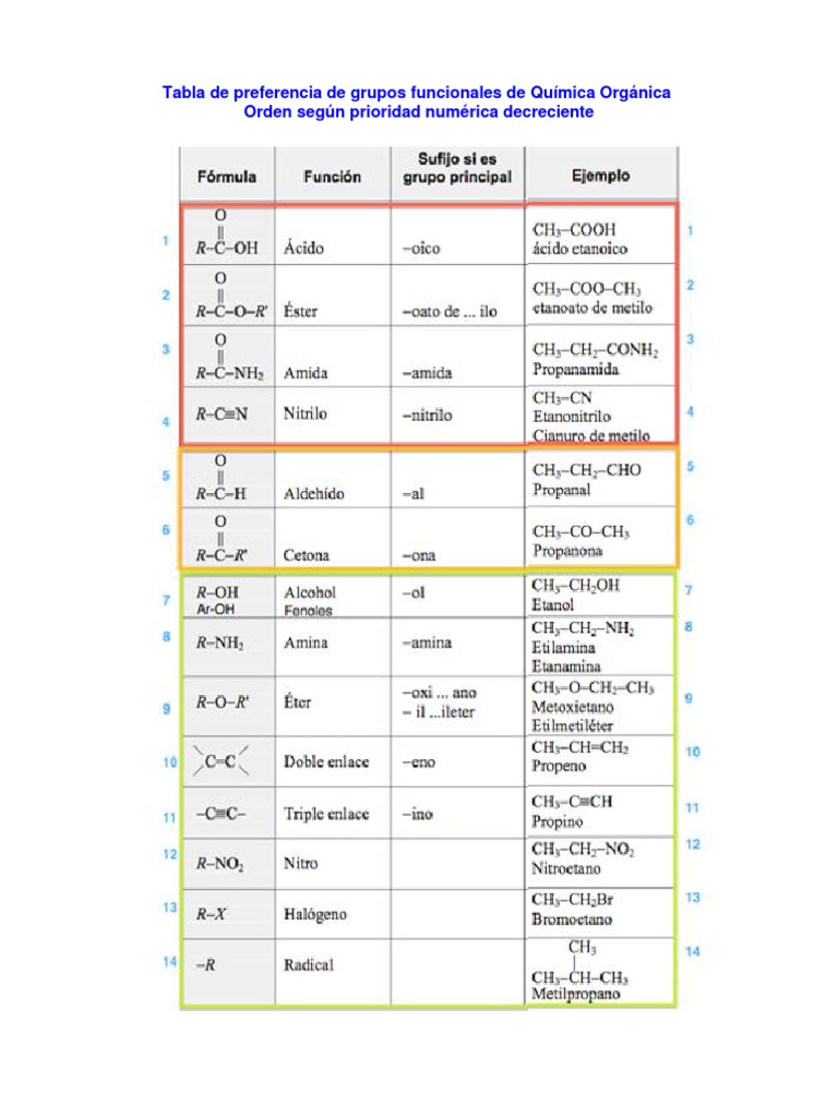 Preferencias de Grupos Funcionales en Química | PDF | Grupo funcional ...