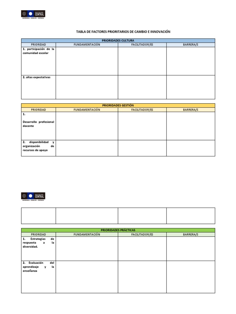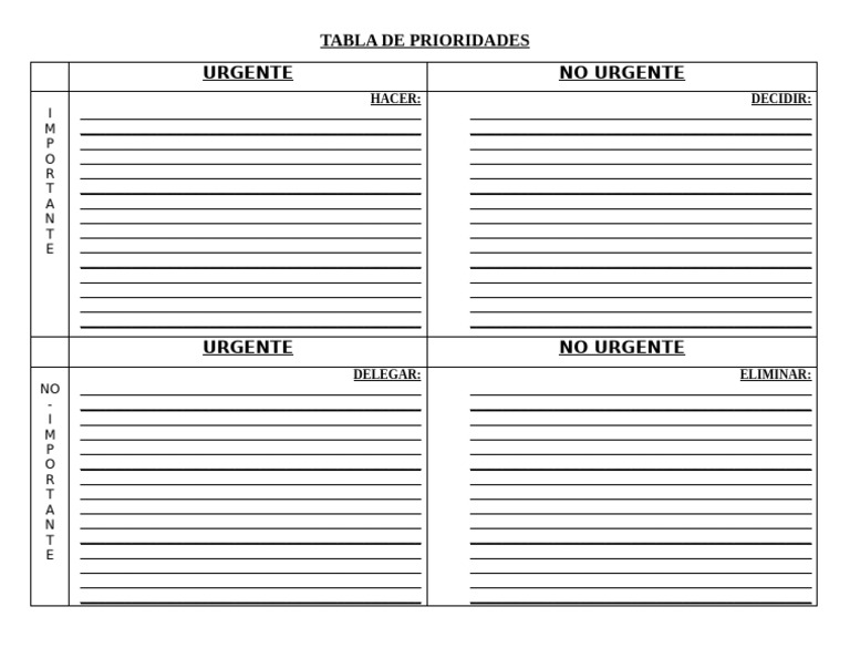 Plantilla de Tabla de Prioridades en Word y PDF Gratis | didocu