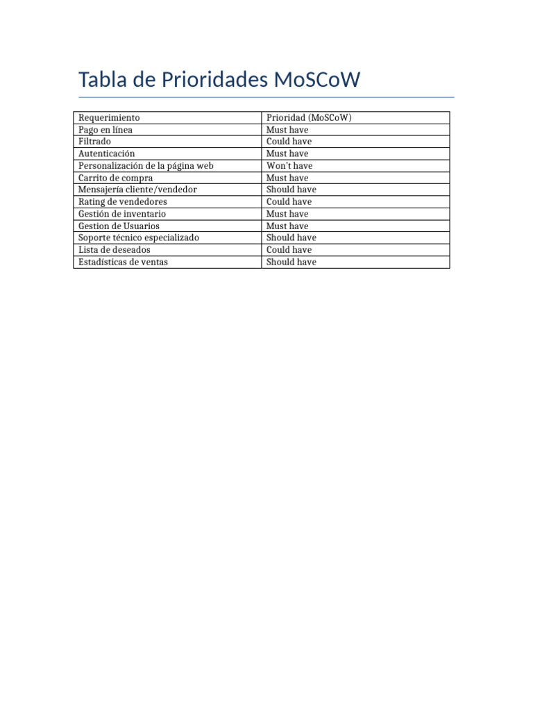 Tabla Prioridades Moscow | PDF