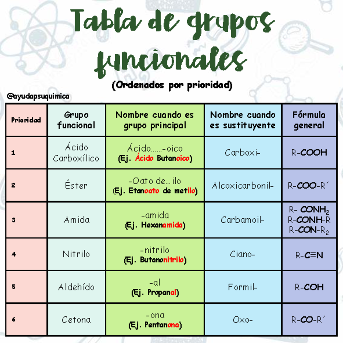 Tabla Prioridades Grupos Funcionales | PDF | Cetona | Sustancias químicas