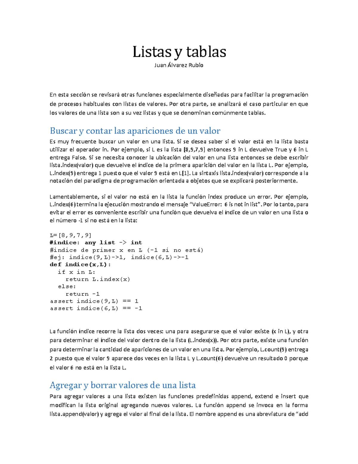 Listas y Tablas en Python: Funciones y Métodos Esenciales - Studocu