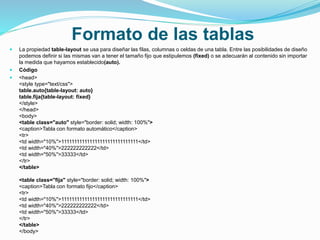 Estilos y herencia CSS en tablas. Width, height, font-size y overflow ...