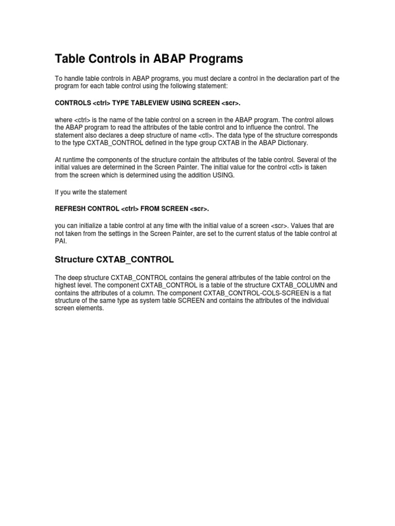 ABAP Table Controls Guide | PDF | Control Flow | Table (Database)
