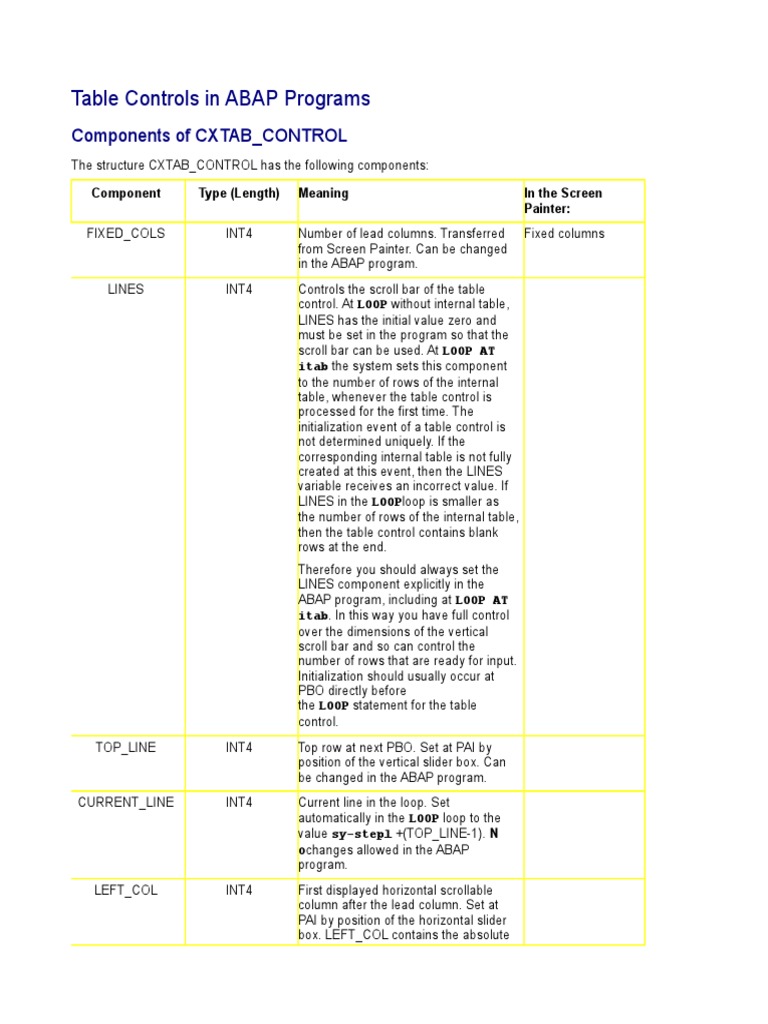 Table Control in ABAP | PDF | Computer Programming | Areas Of Computer ...